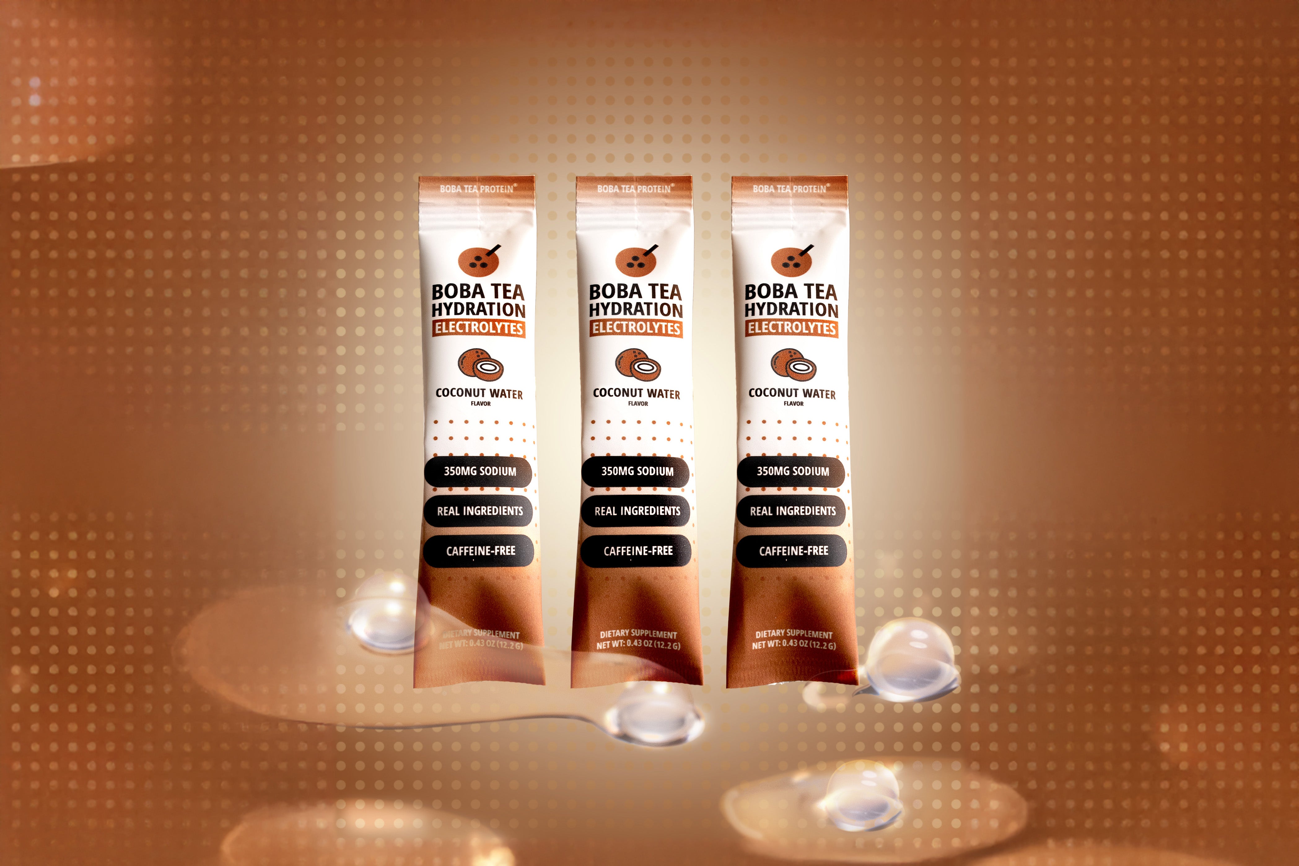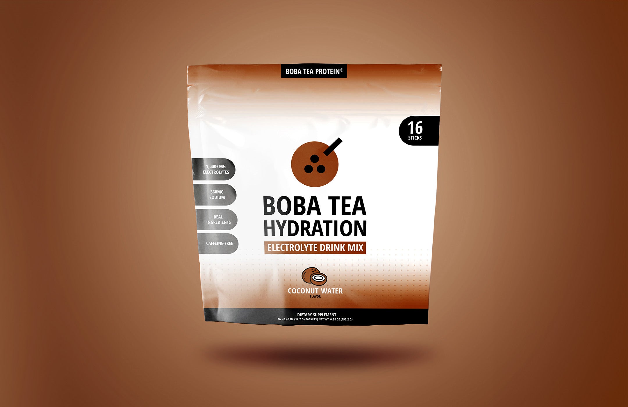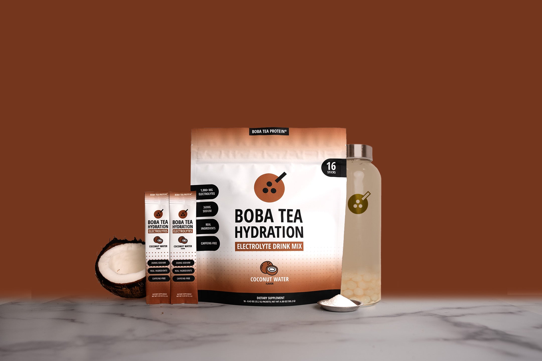 Introducing Boba Tea Hydration, an electrolyte drink mix made to keep you hydrated during your workouts and at your next festival. Flavored with and tastes like REAL organic coconut water!