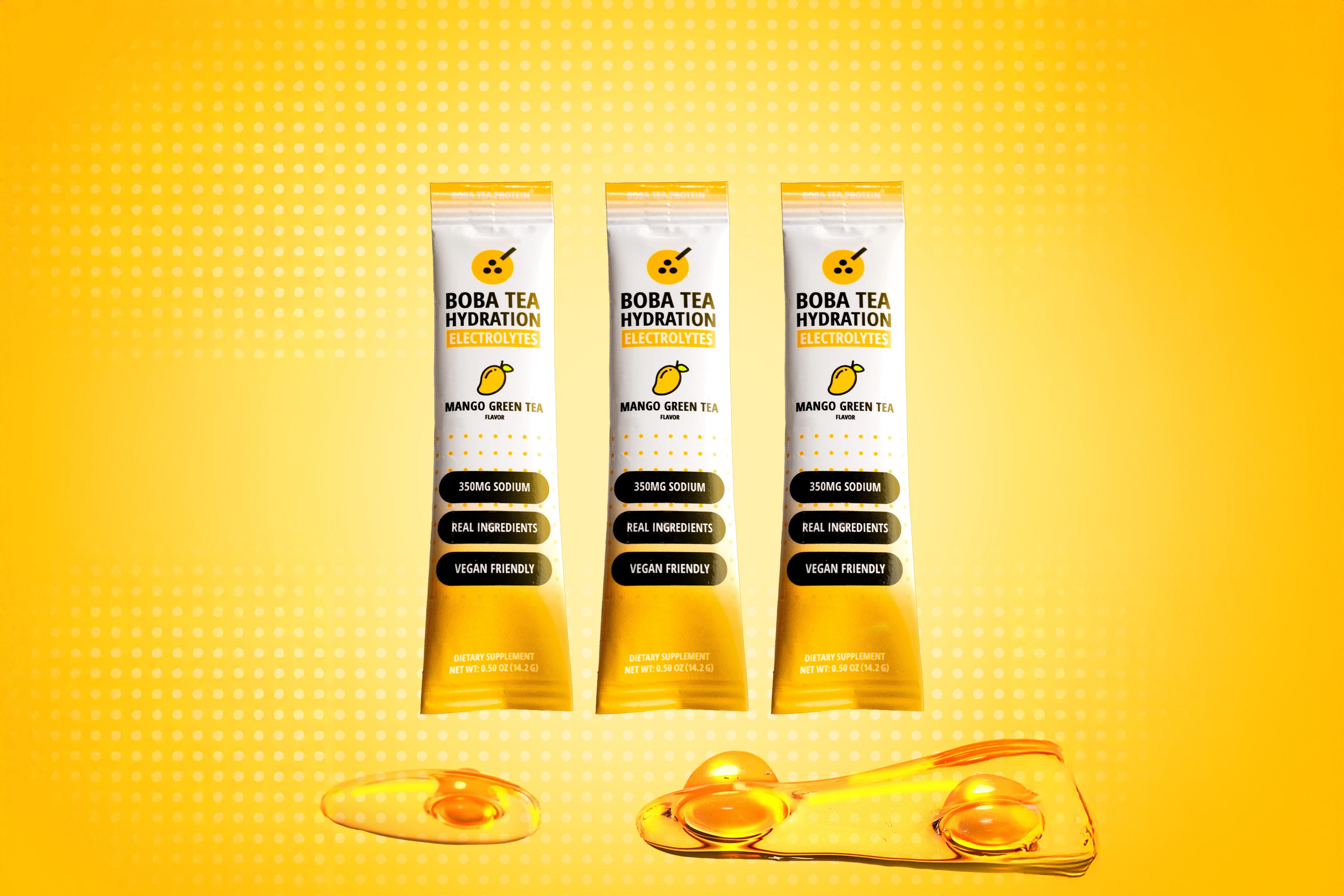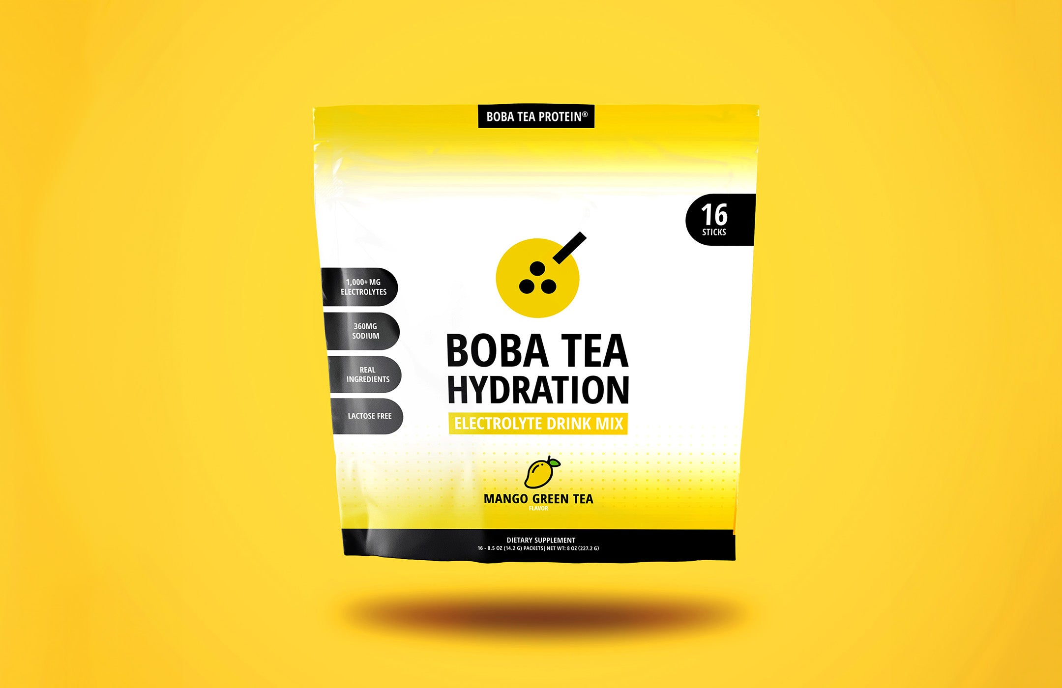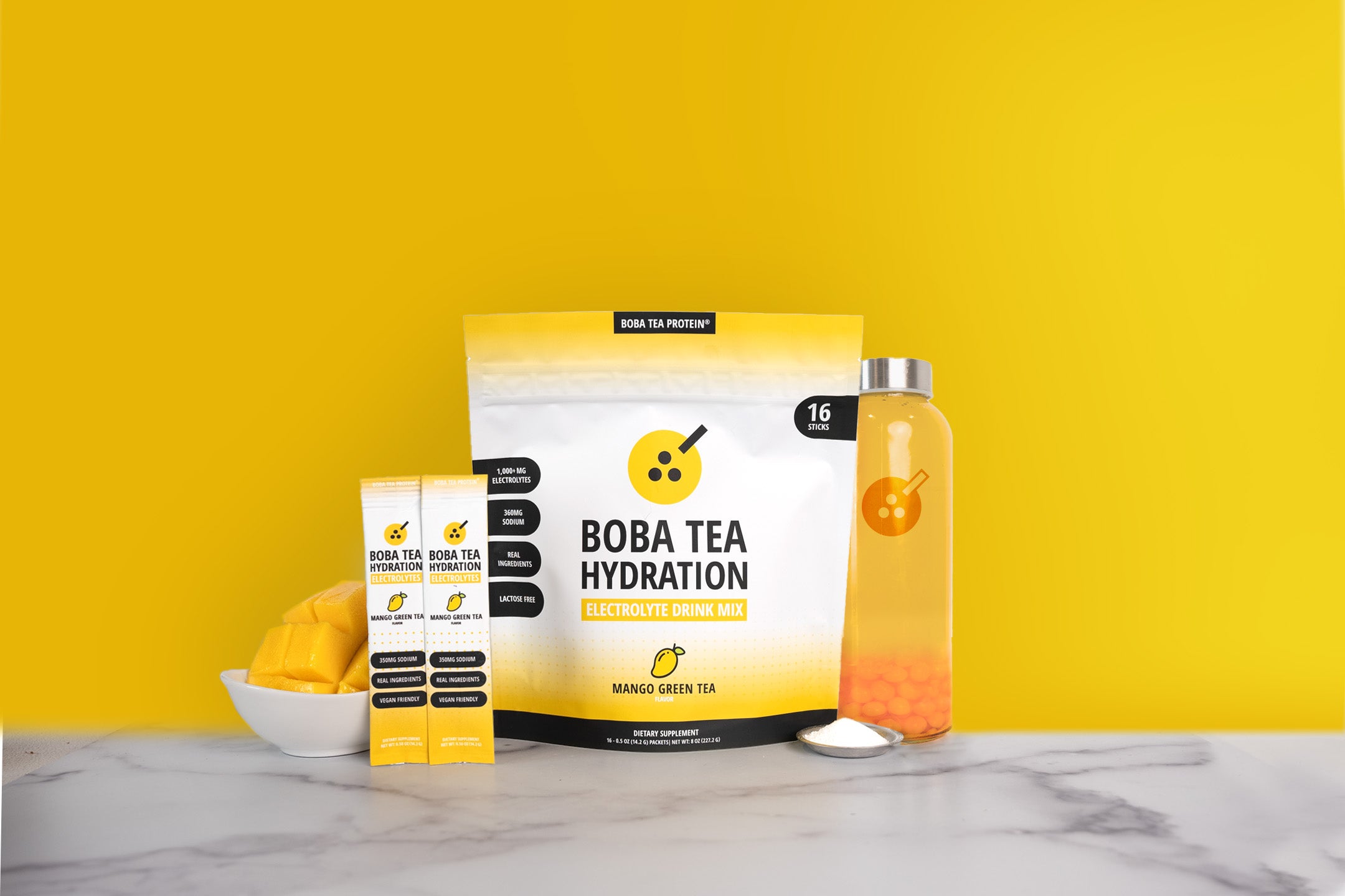 Introducing Boba Tea Hydration, an electrolyte drink mix made to keep you hydrated during your workouts and at your next festival. Flavored with and tastes like REAL mango green tea!