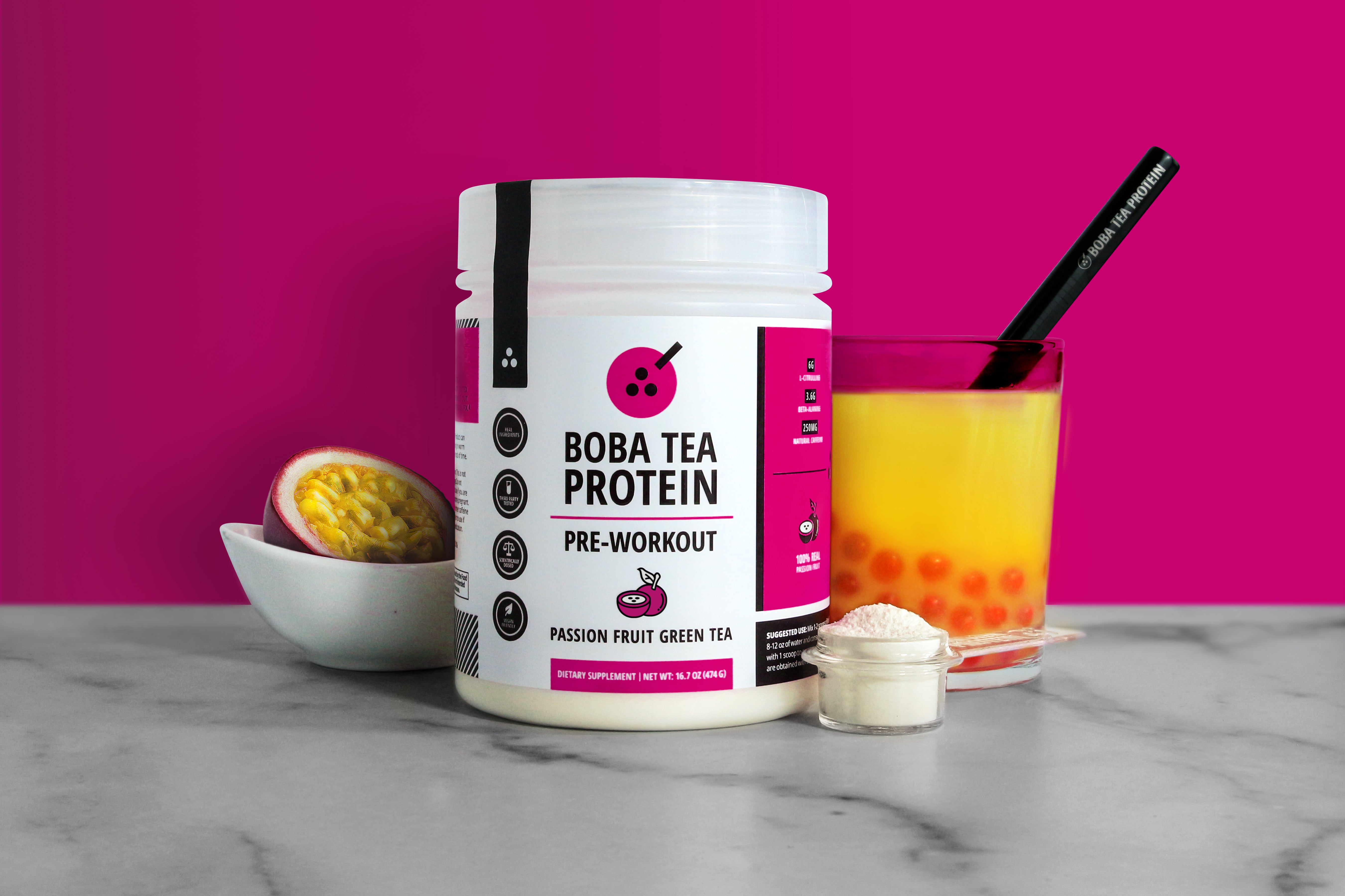 Our Passion Fruit Green Tea Pre-Workout is built to help you get the most out of your workout AND get your boba fix.
